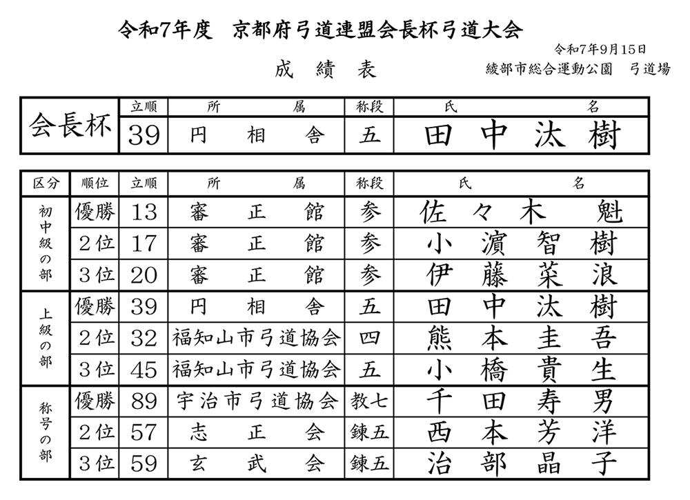 • 令和7年度 京都府弓道連盟会長杯弓道大会の結果