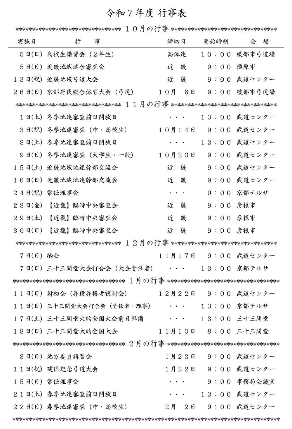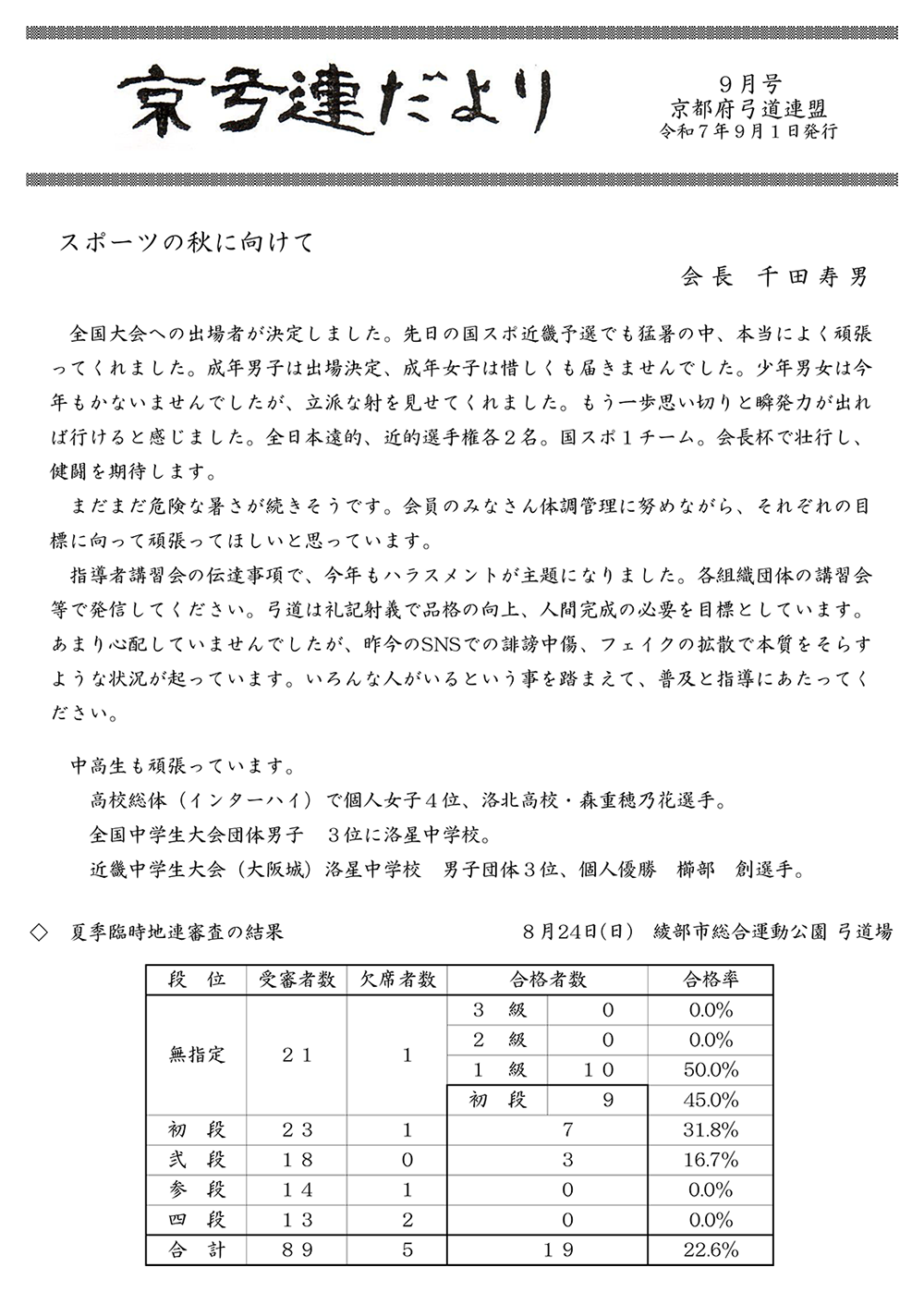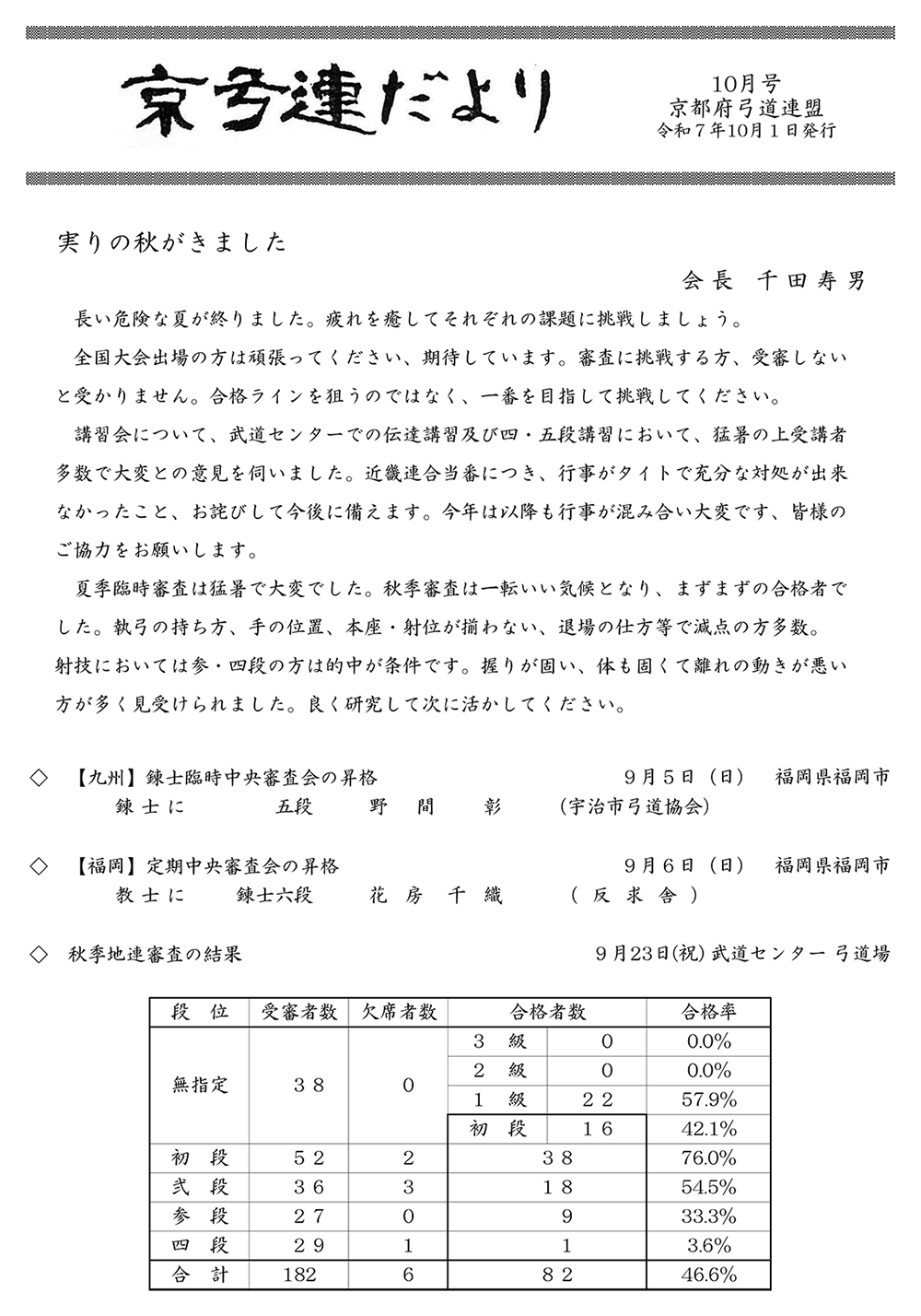 • 令和7年度 京都府弓道連盟会長杯弓道大会の結果を掲載しました。