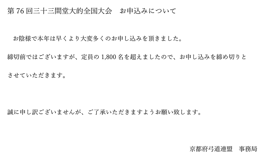 第76回三十三間堂大的全国大会 お申込みについて